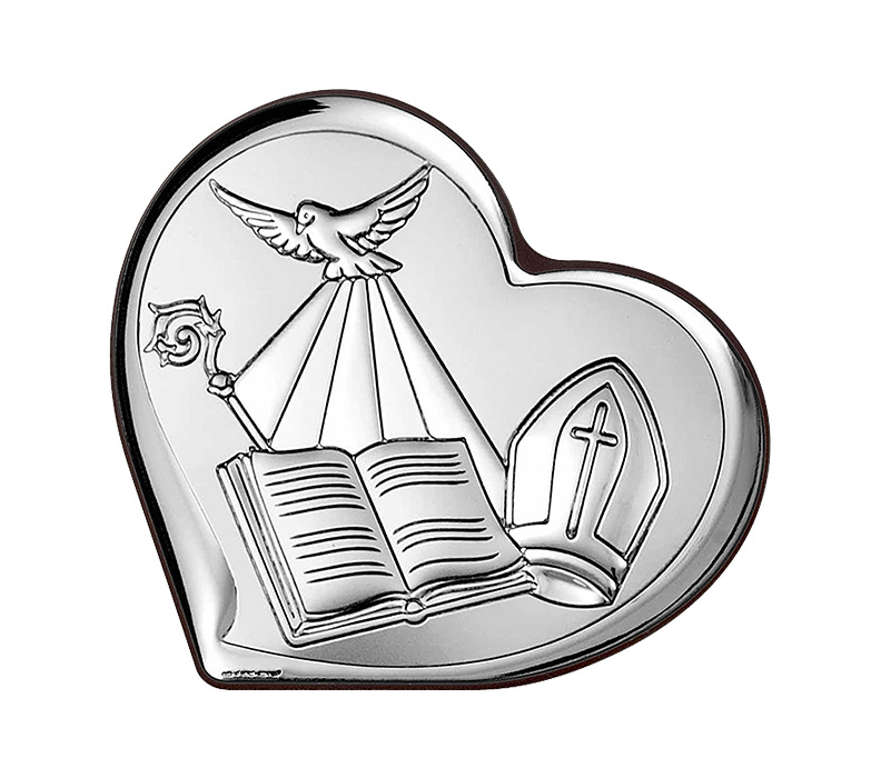 • Silber Bild der italienischen Firma Beltrami in Form eines Herzens. Vorzügliches personalisiertes Andenken zur Firmung.