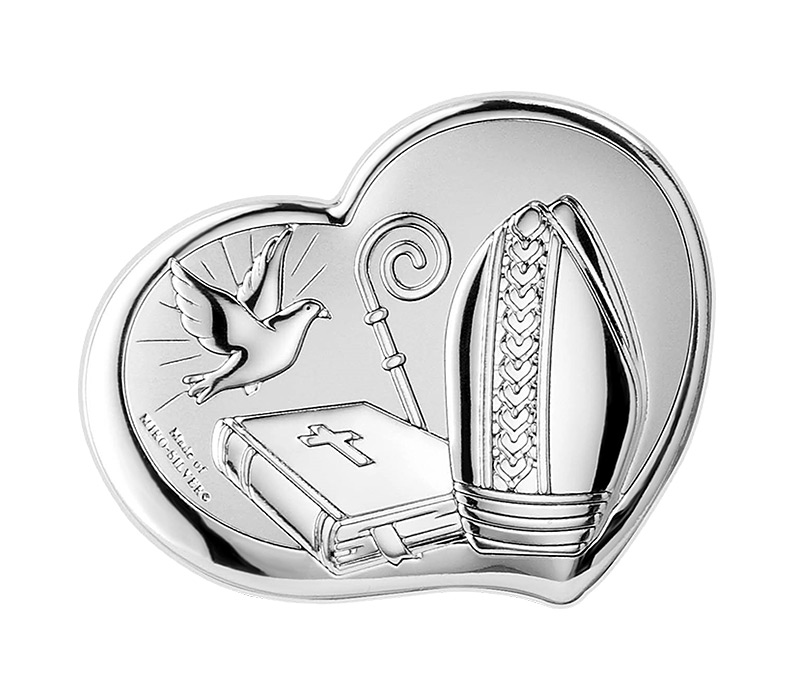 • Silber Bild der italienischen Firma Valenti in Form eines Herzens. Vorzügliches personalisiertes Andenken zur Firmung.