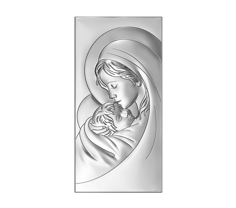• Silber Bilde Gottesmutter Maria mit Kind Jesus der renomierten italienischen Firma Beltrami. Vorzügliches Andenken zur Hochzeit oder Hochzeitzur, Taufe oder Andenken zur Heiligen Erstkommunion.