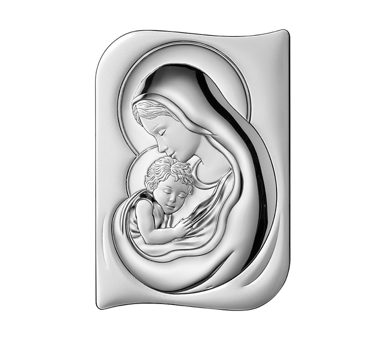 • Silber Bilde Gottesmutter Maria mit Kind Jesus der renomierten italienischen Firma Valenti (das Produkt wird unter der Marke Sovrani angeboten).