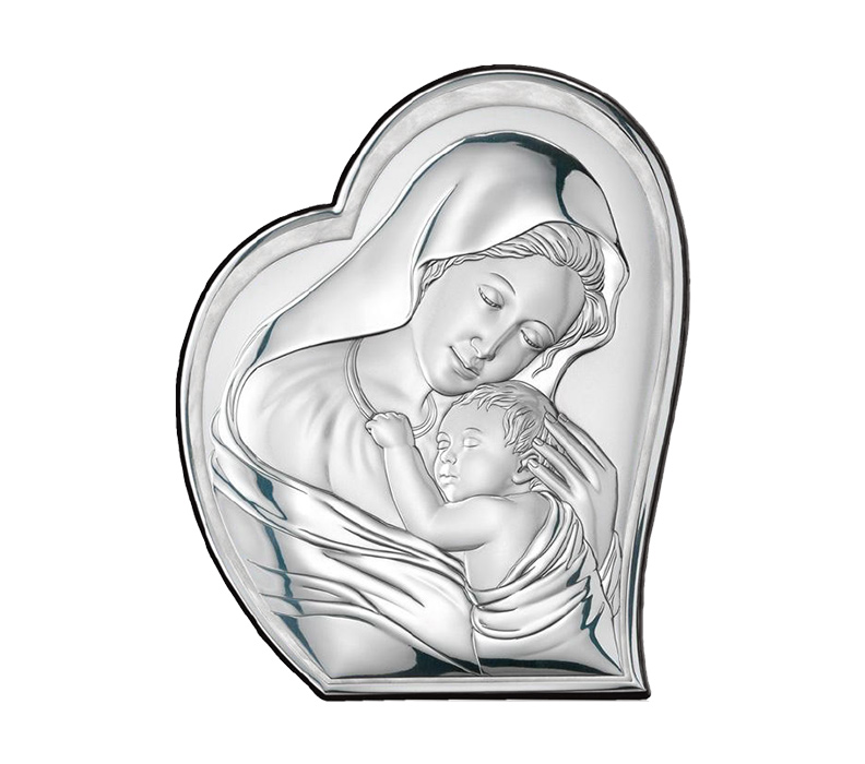• Versilbertes Bild Gottesmutter mit dem Jesuskind der renomierten italienischen Firma Valenti. Vorzügliches Andenken zur Hochzeit, Hochzeitsjubiläum, zur Taufe oder zur Heiligen Erstkommunion.