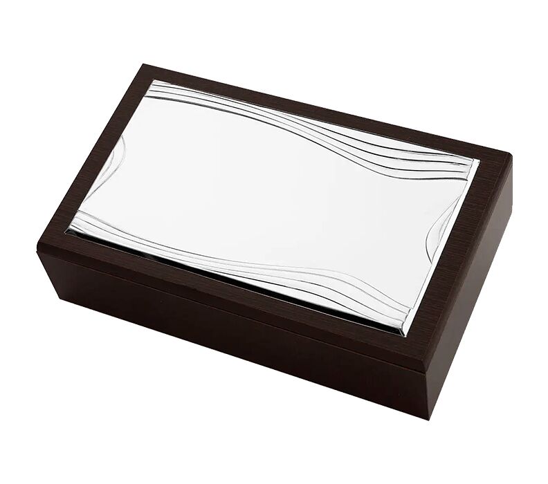 • Klassische Schmuckschatulle aus dunklem Holz mit einem Deckel aus 925er Silber und einem Innenfutter aus beigem Velours. Die besondere italienische Ästhetik und die präzise Verarbeitung machen diese Schatulle zu einem perfekten Geschenk für einen geliebten Menschen – ideal zu Anlässen wie Valentinstag, Geburtstag oder Hochzeitstag.