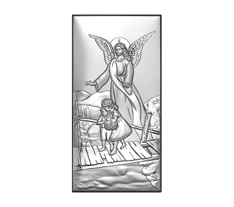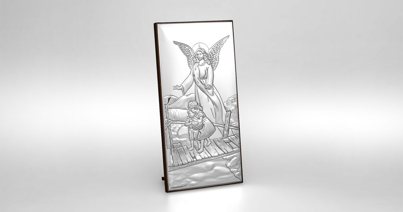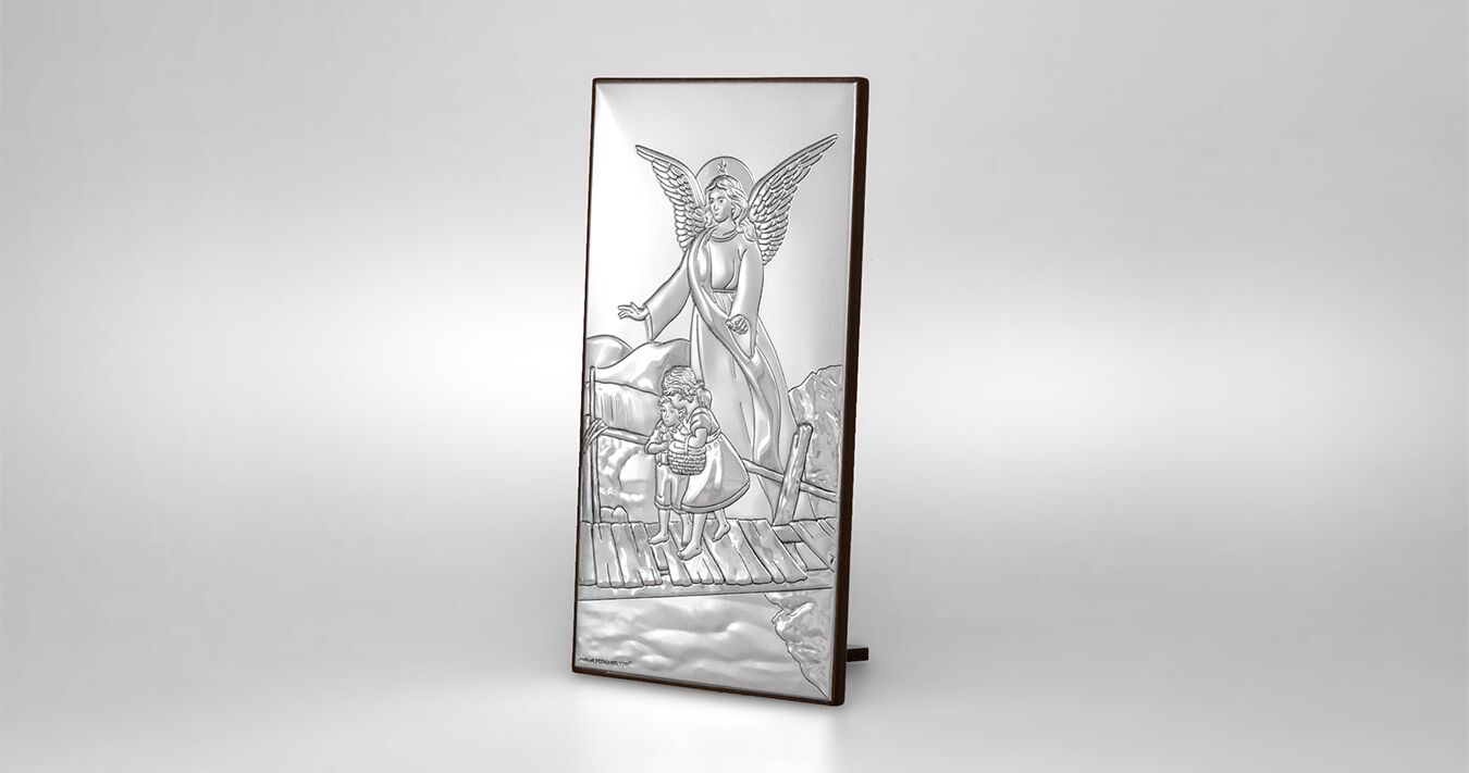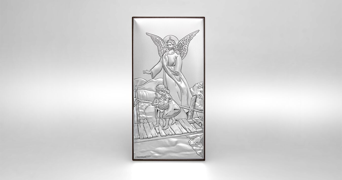 • Ein wunderschönes Silberbild mit dem Schutzengel, der über die Kinder wacht. Ein wunderschönes silbernes Tauf- oder Neujahrssouvenir für ein Baby, das mit seinem Glanz jedes Kinderzimmer schmückt und eine Atmosphäre des Friedens und der Geborgenheit schafft.