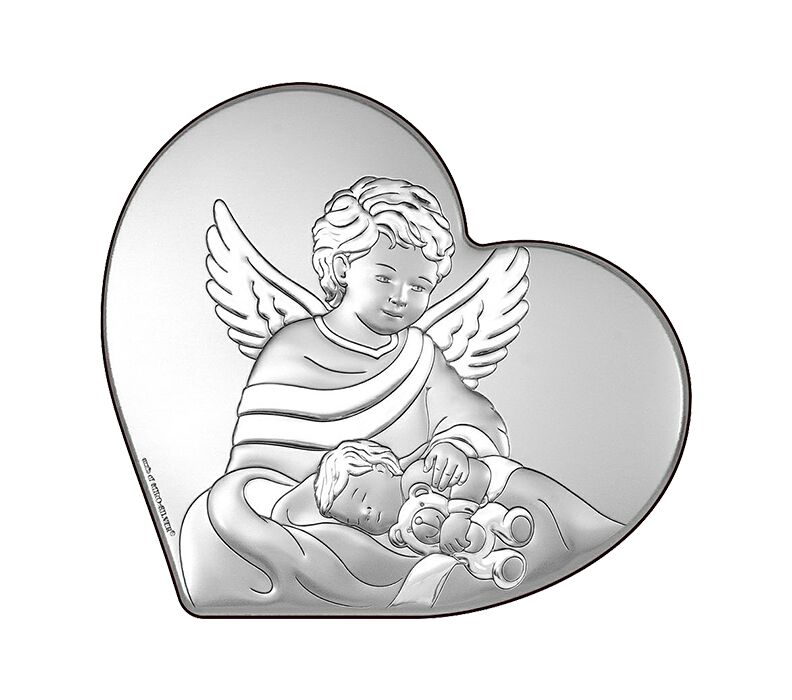 • Ein schönes Silberbild in Herzform, das einen Engel zeigt, der über ein schlafendes Kind wacht. Der Schutzengel ist ein Symbol für göttlichen Schutz, Fürsorge und auch geistliche Führung. Ein ideales Geschenk zur Taufe, das ein Leben lang eine besondere Erinnerung bleiben wird. Mit viel Liebe zum Detail gefertigt, schmückt er jedes Kinderzimmer.