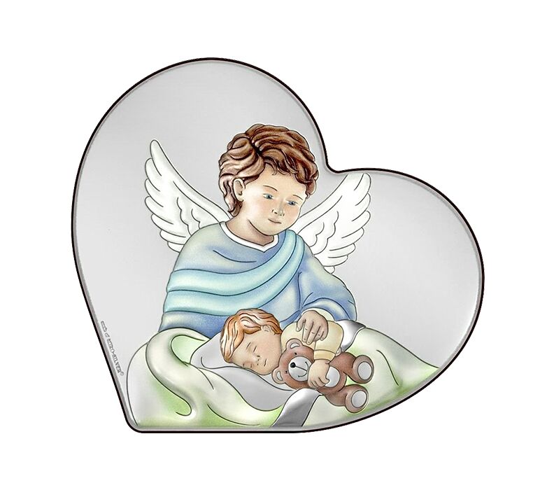 • Ein schönes Silberbild in Herzform, das einen Engel zeigt, der über ein schlafendes Kind wacht. Der Schutzengel ist ein Symbol für göttlichen Schutz, Fürsorge und auch geistliche Führung. Ein ideales Geschenk zur Taufe, das ein Leben lang eine besondere Erinnerung bleiben wird. Mit viel Liebe zum Detail gefertigt, schmückt er jedes Kinderzimmer.