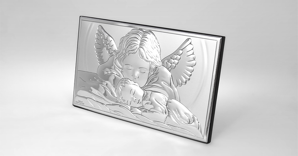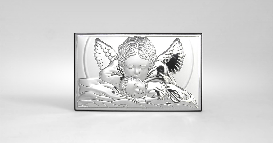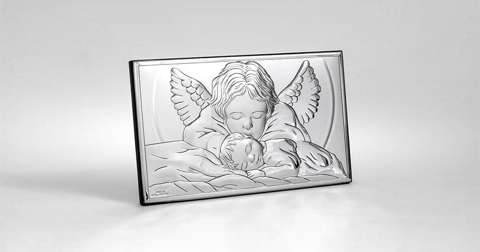 • Silber Bild Engel über Kind der renomierten italienischen Firma Valenti. Vorzügliches Andenken zur Taufe.