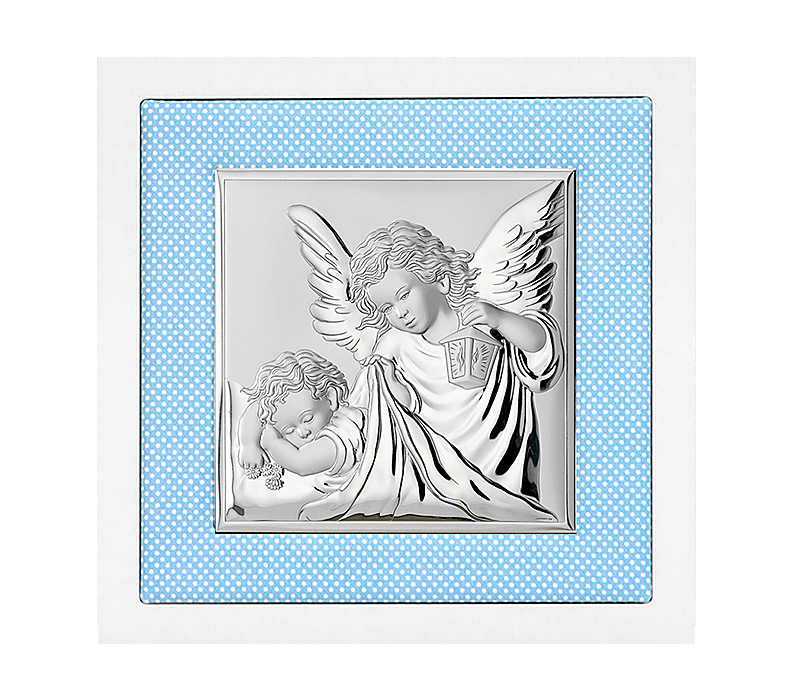 • Versilbertes Bild "Engel über Kind" der renomierten italienischen Firma Valenti. Vorzügliches Andenken zur Taufe oder Andenken zur Heiligen Erstkommunion.