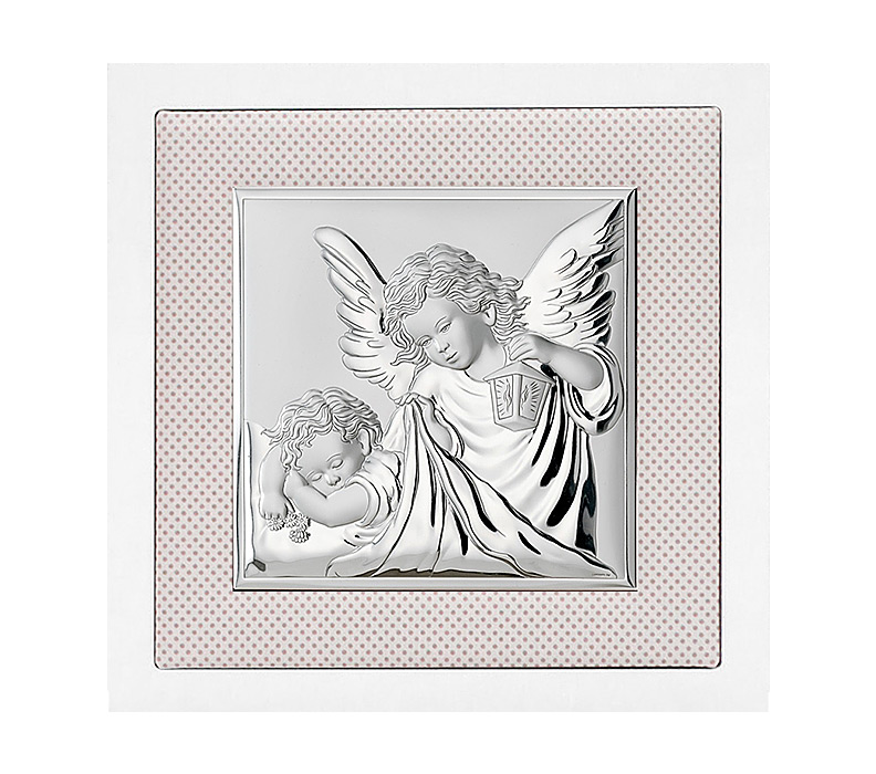• Versilbertes Bild "Engel über Kind" der renomierten italienischen Firma Valenti. Vorzügliches Andenken zur Taufe oder Andenken zur Heiligen Erstkommunion.