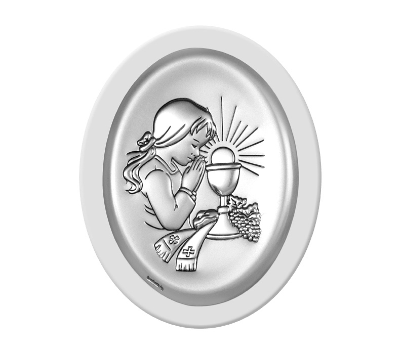 • Versilbertes Bild der renomierten italienischen Firma Beltrami. Vorzügliches Andenken zur Heiligen Erstkommunion für Mädchen.
