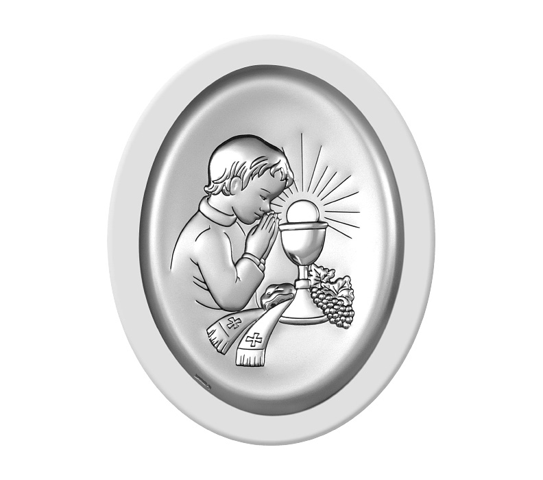 • Silbernes Bild der renomierten italienischen Firma Beltrami. Vorzügliches Andenken zur Heiligen Erstkommunion für Junge.